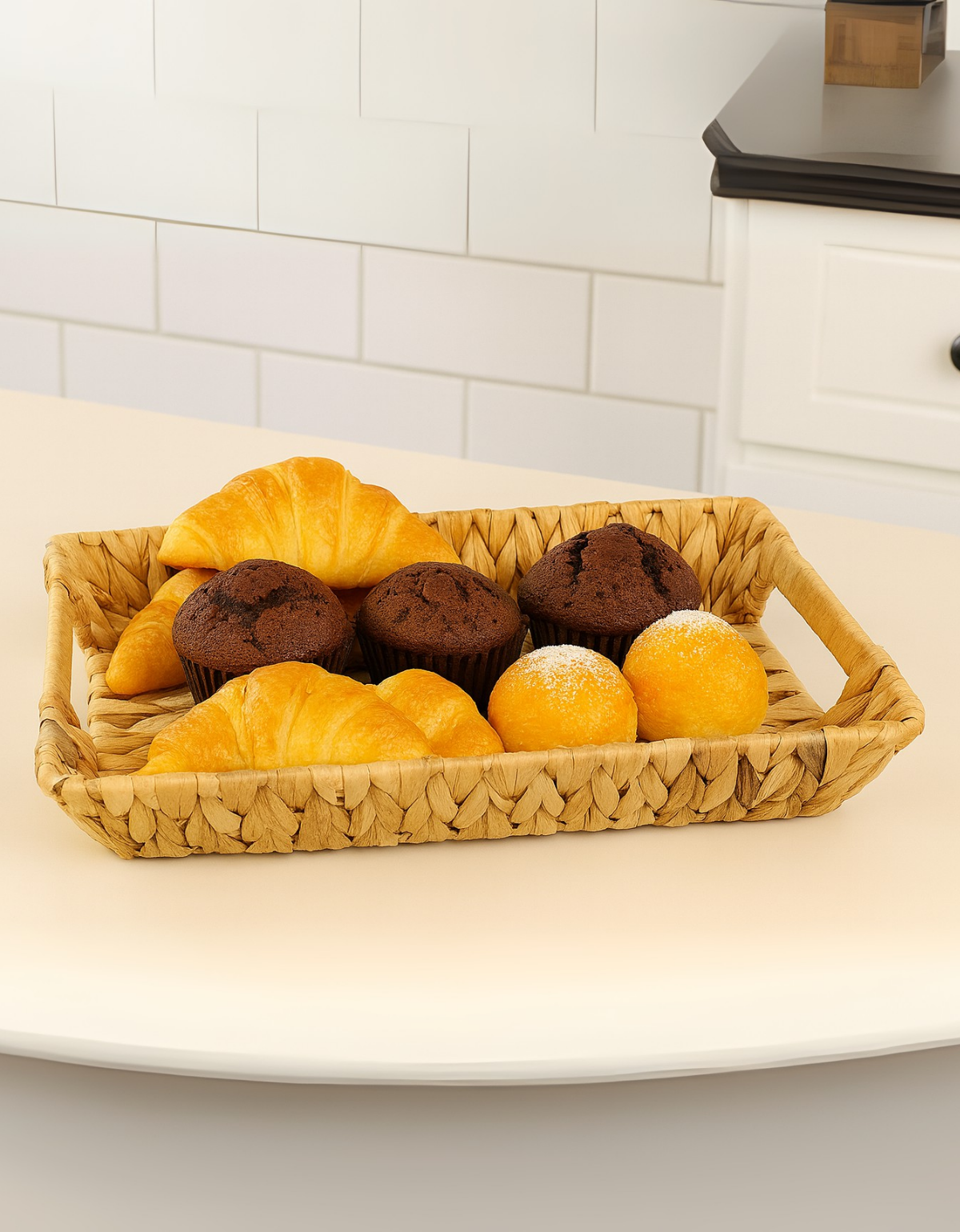 Bandeja retangular de fibra natural é um produto com forte apelo visual e grande versatilidade de uso. Seu acabamento artesanal e o formato prático fazem dela uma peça ideal para composições decorativas, organização de ambientes ou uso como item de servir.
