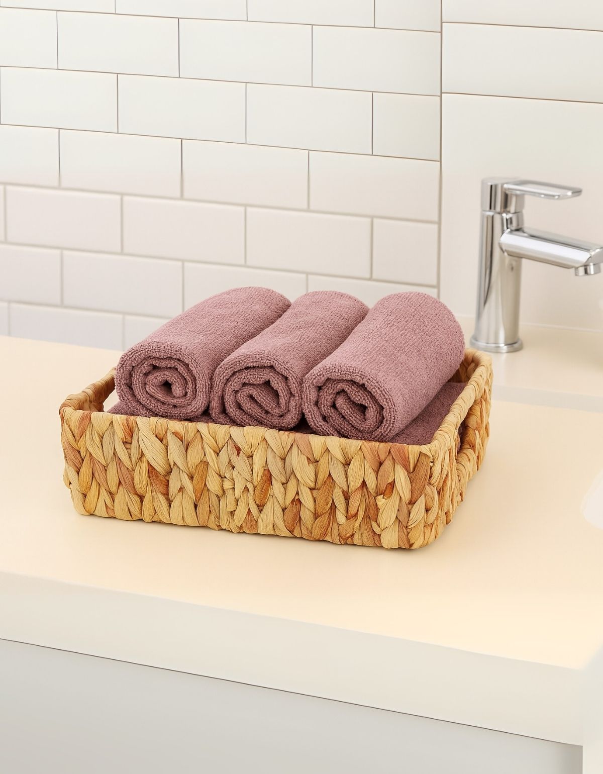 Cesta retangular confeccionada em fibra natural trançada, com acabamento artesanal que une resistência, praticidade e charme rústico. Versátil e funcional, pode ser usada para servir café da manhã completo, frutas, pães e petiscos, além de ser perfeita para organizar toalhas, cosméticos ou objetos decorativos em diversos ambientes.