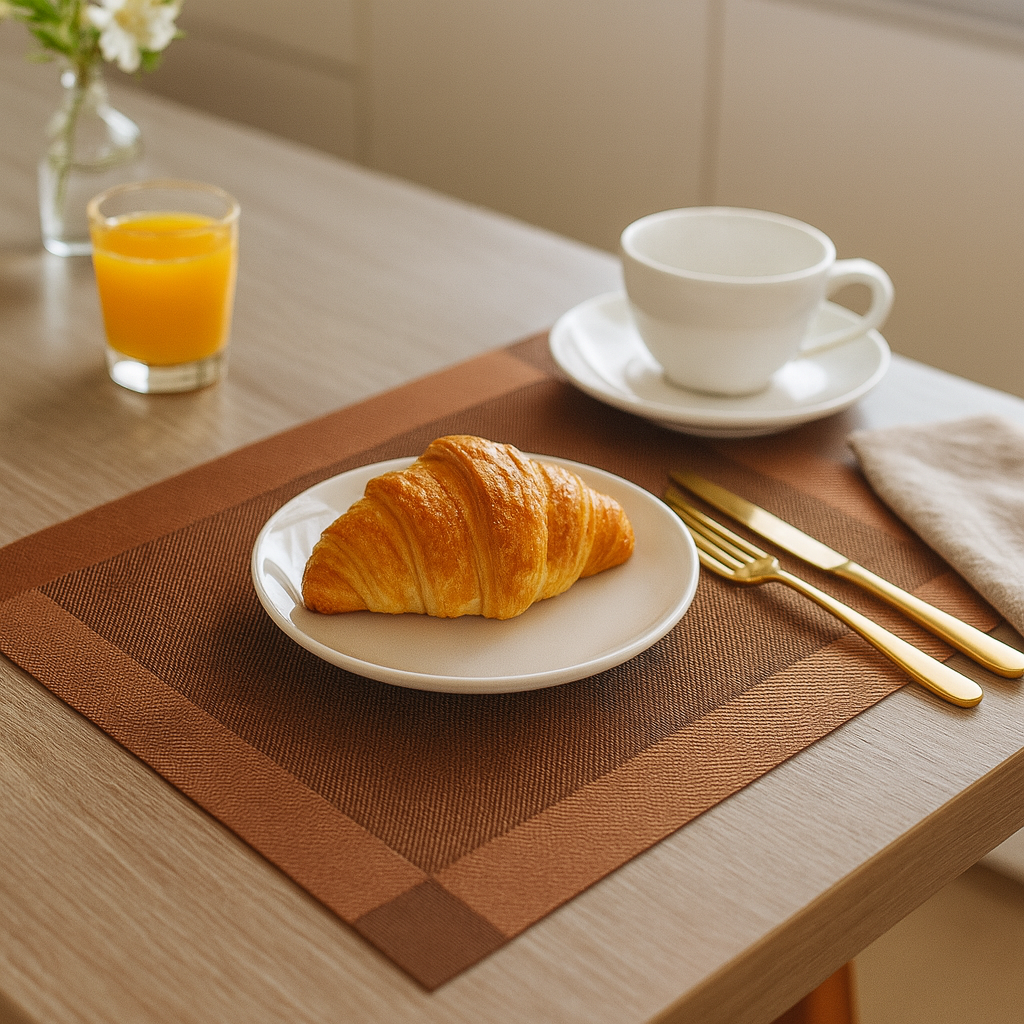 Combine com guardanapos de linho ou tecido na mesma tonalidade, ou aposte em detalhes metálicos (prata, dourado) no sousplat e talheres para criar um contraste elegante.