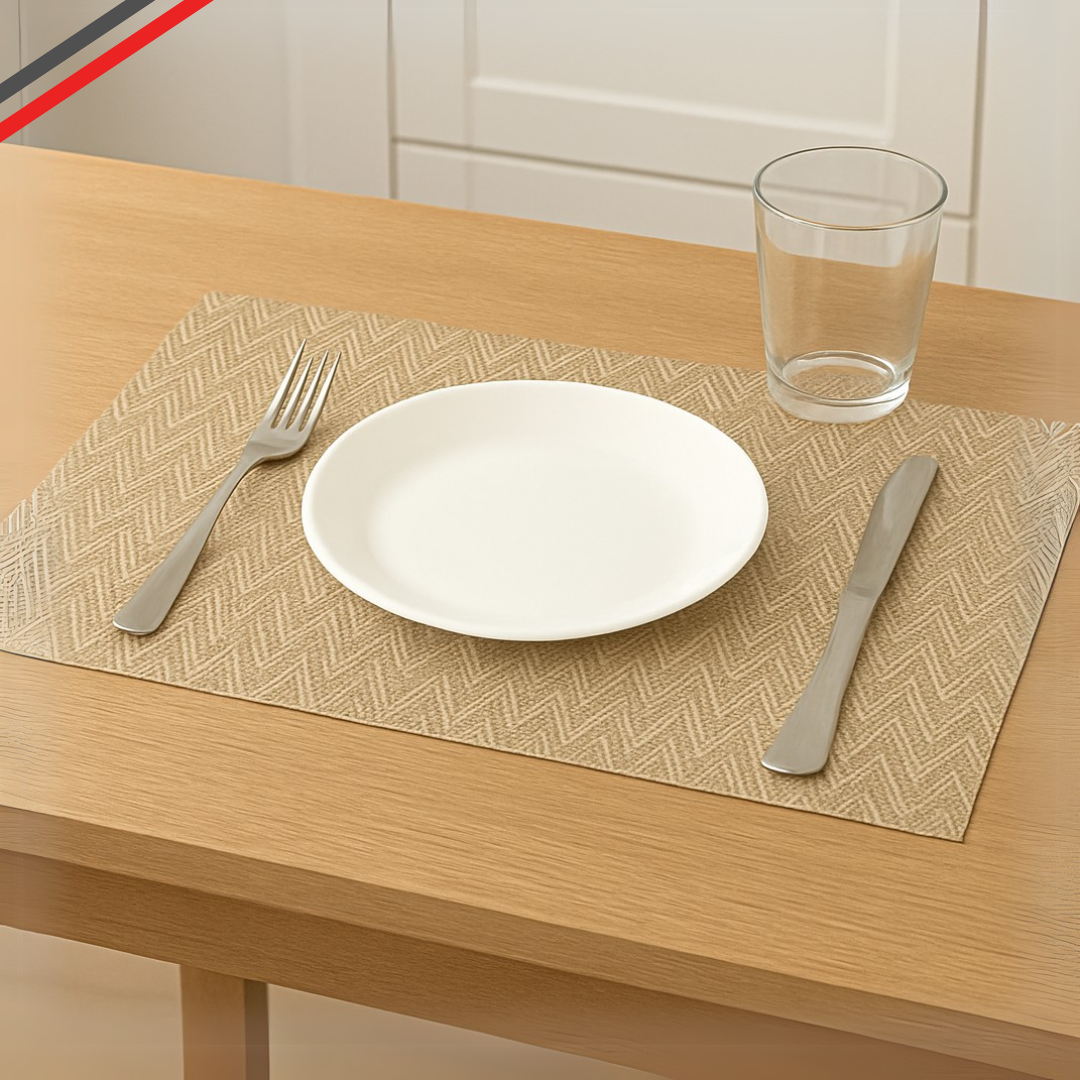 O jogo americano marrom em PVC com linhas triangulares é a combinação perfeita entre design contemporâneo e praticidade.