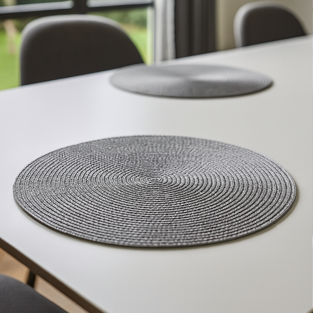 Deixe cada refeição mais especial com o jogo americano redondo prata. Mais do que funcional, ele decora!